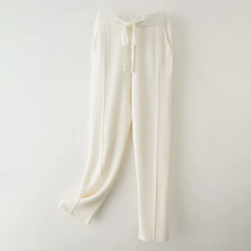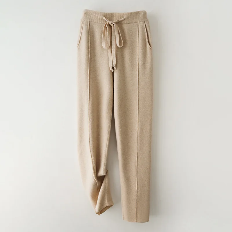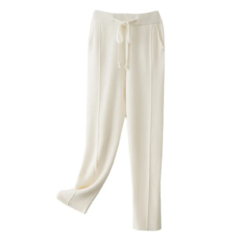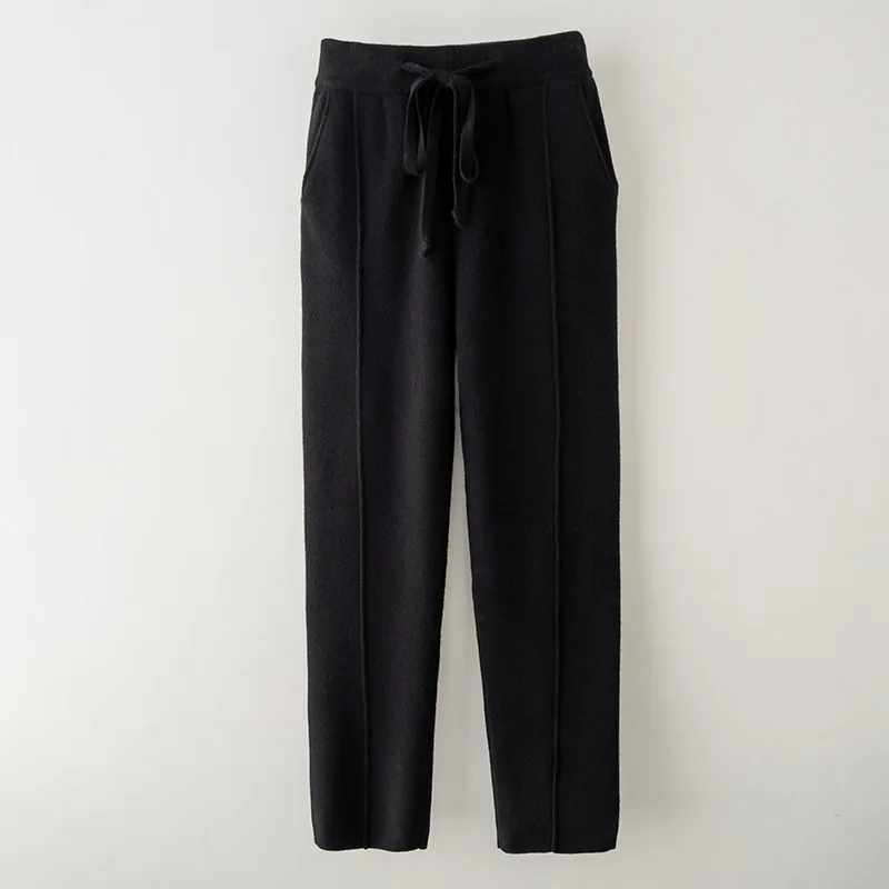 Autumn Winter Women'S Wool Pants Heavyweight Knitted Casual Pants Women Solid Color Drawstring Straight Warm Trousers 100% Wool